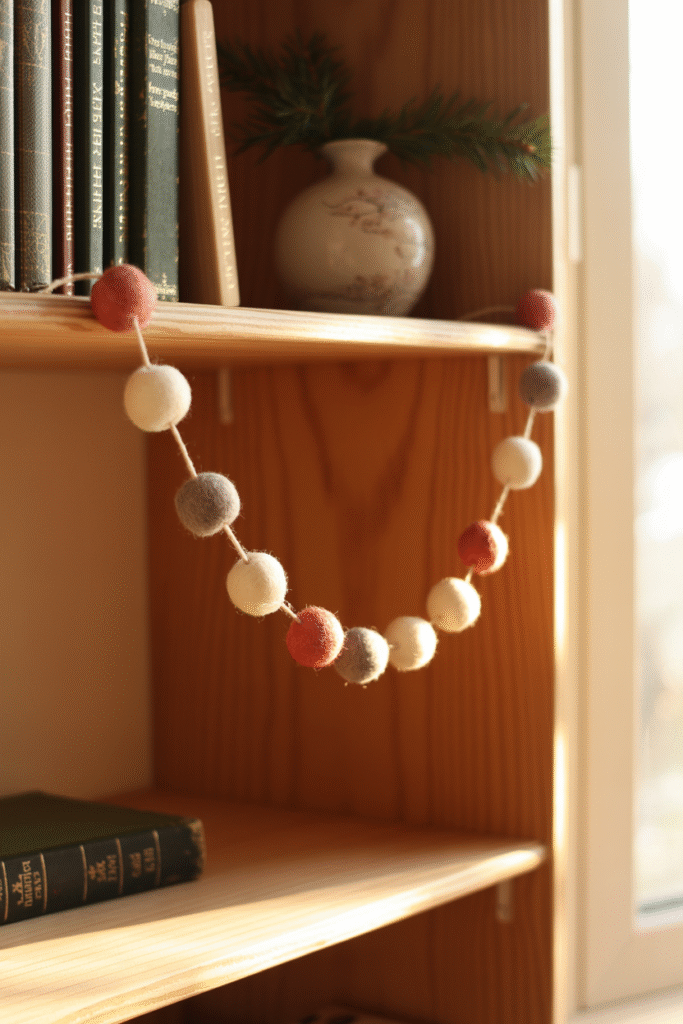 Roll roving or felt scraps into balls, and felt them (or skip that step for simplicity). Thread onto fishing line for a garland that smells faintly like wool and lasts years. I drape mine across my bookshelves every year, and it never gets old.