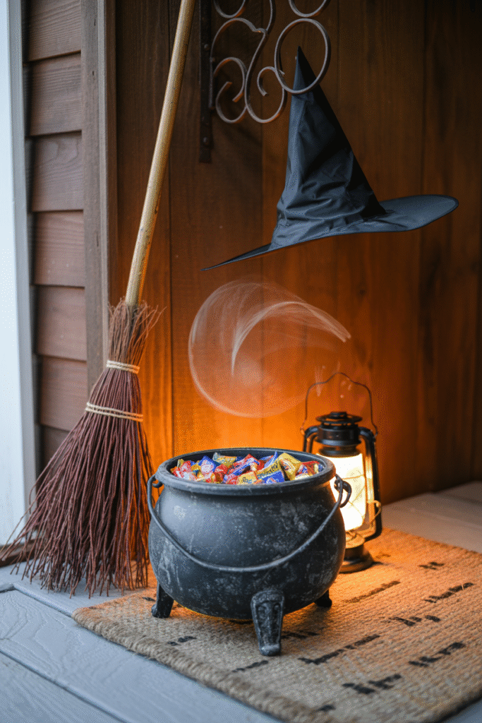 To make it stand out, I tucked a low LED light (battery-operated puck, €8 / $9) inside the cauldron. At night, the glow made kids believe “magic” was inside.