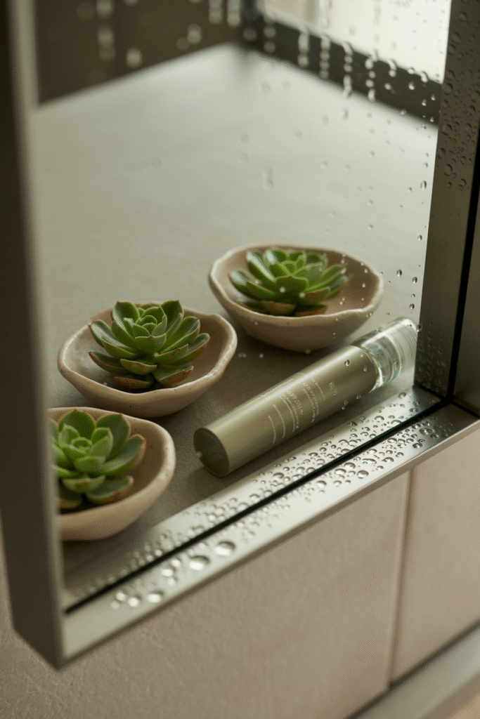 If your shower has a niche or corner ledge, line it with small, waterproof pots (like ceramic or glazed stoneware) filled with humidity-lovers like ferns or bamboo. I arranged three ferns in a client’s shower niche the steam kept them lush, and the green pop against white tiles was striking. Pro tip: Use pots with drainage holes and a small saucer to prevent leaks.