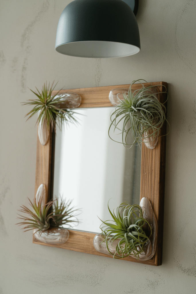 If your mirror has a wide frame, tuck a few small air plants or succulents into the corners. I did this with a rustic wooden mirror and found it added texture without shrinking the space. Pro tip: Secure plants with clear adhesive or museum gel never hot glue, which can damage finishes.