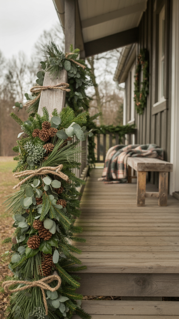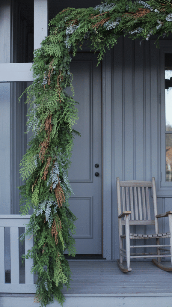 Pro tip: If you live somewhere with harsh winter weather, consider using a mix. Put a base of artificial garland, then weave in fresh greenery and accents. That way, when the real stuff fades, your porch still looks good.