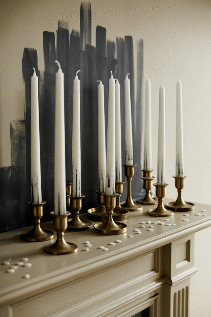 I love the look of old, dripping candles, but real wax can be a nightmare (and a fire hazard). Instead, save those old candles that have burned down, paint them with white acrylic paint, and add streaks of black or gray for that “distressed” look. Cluster them on your mantel or dining table.