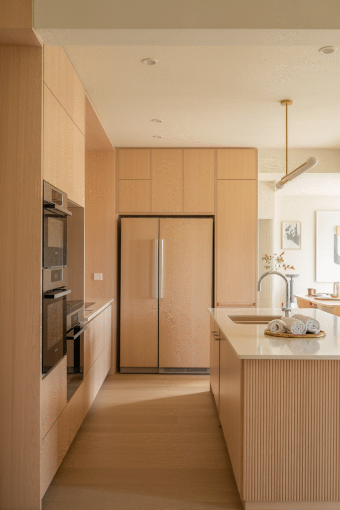 Open kitchens demand tidy habits or smart storage. I swear by deep drawers (60 cm/24 in wide, 50 cm/20 in deep) for pots and pans, and pull-out trash bins blended into cabinetry. In my own kitchen, I added a slim 15 cm (6 in) cabinet next to the fridge for baking sheets and trays. Pro tip: Use frosted glass doors on upper cabinets for a light, airy look that still hides clutter.