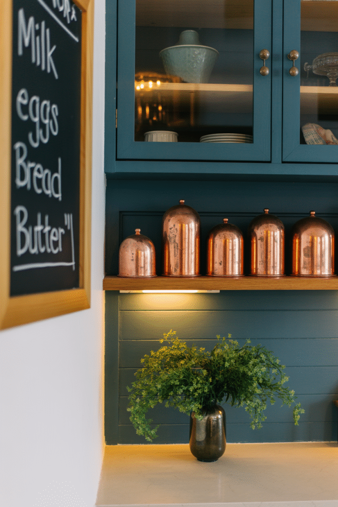 Finally, inject your personality. I’ve encouraged clients to hang a collection of vintage plates, display a row of copper molds, or paint the inside of glass-front cabinets a moody blue. In my kitchen, a chalkboard wall in the corner lists recipes and grocery needs—practical and fun.