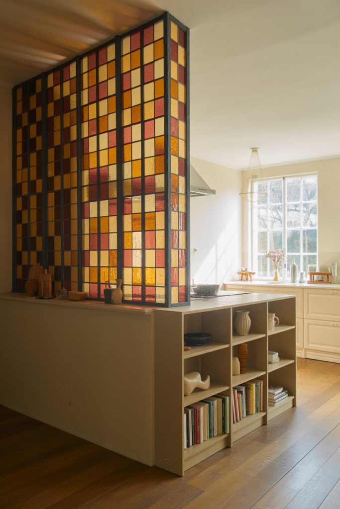 Need some separation? Try a sliding barn door, a room-height bookcase, or a folding screen. One couple used a vintage stained-glass partition—privacy without blocking light.