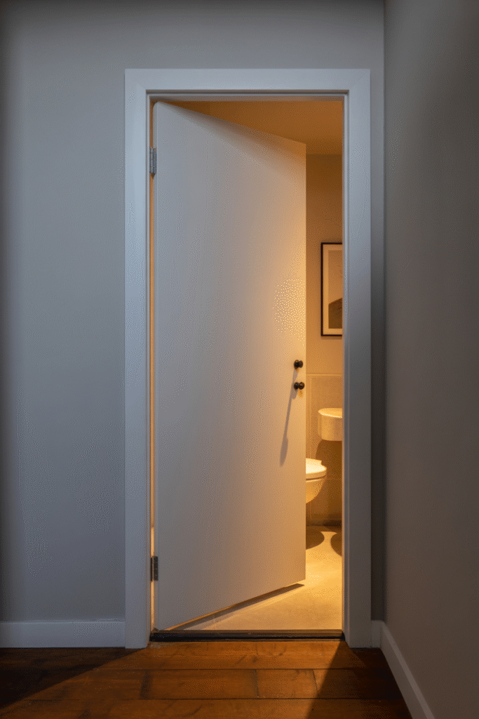 Standard doors that swing inward take up precious space. Even a modest 60 cm (24 inch) door needs almost a metre (3 feet) of clearance to open fully. I’ve helped several clients retrofit pocket doors or slim sliding doors instead, and in every case, the room instantly became more usable. If privacy is a concern, look for models with good sound insulation.