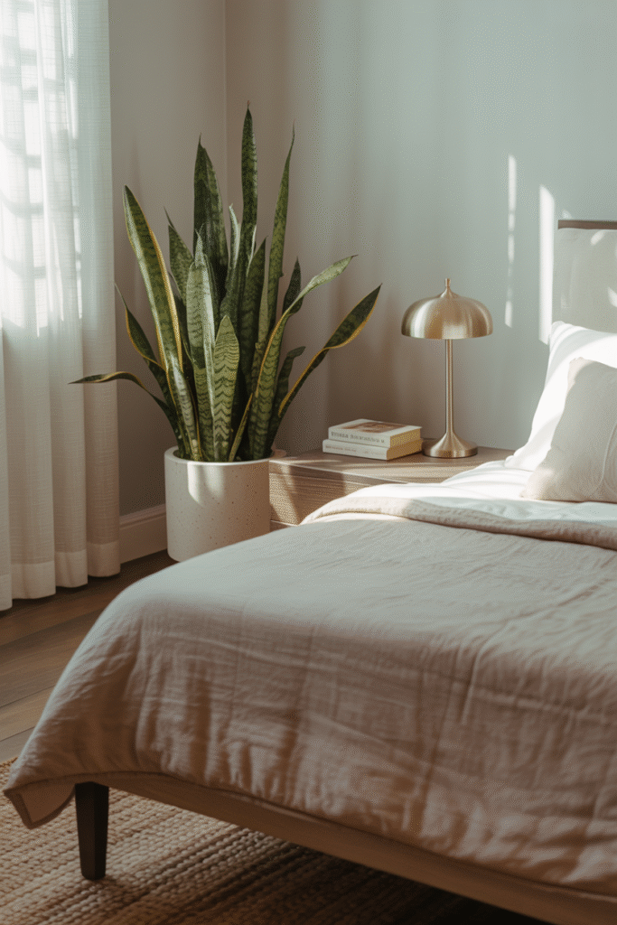 Bedrooms should feel restful, and plants can help with that. I recommend plants that are easy on allergies and promote better air quality, like snake plants, spider plants, or peace lilies. Place them on a nightstand, dresser, or a shelf—not crowded, but present.