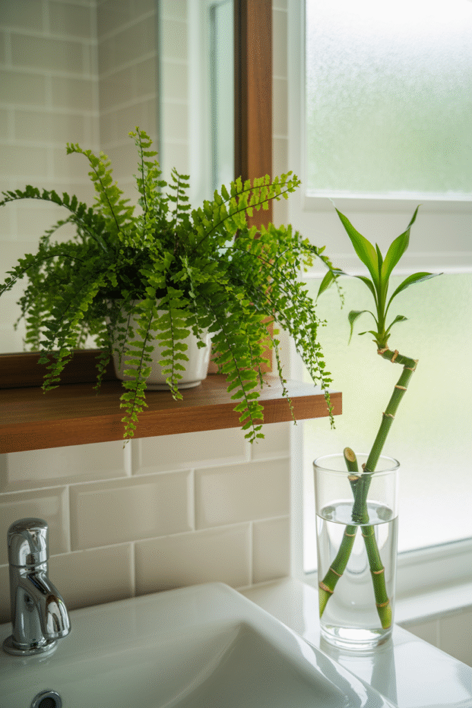 In my bathroom, I have a maidenhair fern on a high shelf and a lucky bamboo in a glass vase on the counter. They thrive with minimal care—the shower’s humidity does half the work.