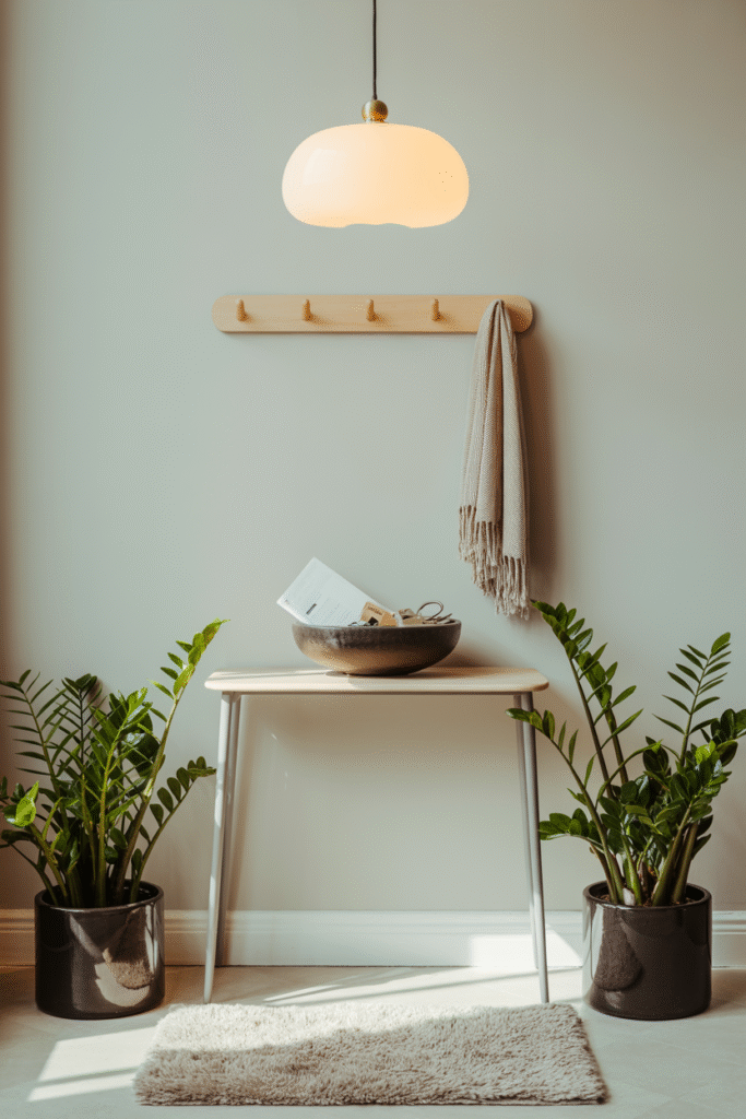 What works best: ZZ plants, snake plants, or parlor palms are tough enough for entryways. I use a ZZ plant in a black ceramic pot—it’s survived two winters, a move, and my forgetful watering.
