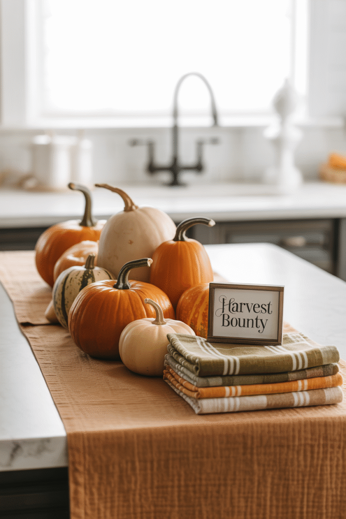 In my own kitchen, I keep two sets of fall towels—one a darker plum shade, one a pumpkin-like rust—because rotating them instantly freshens the space. The beauty is you can pick these up for less than ($6–10) each.