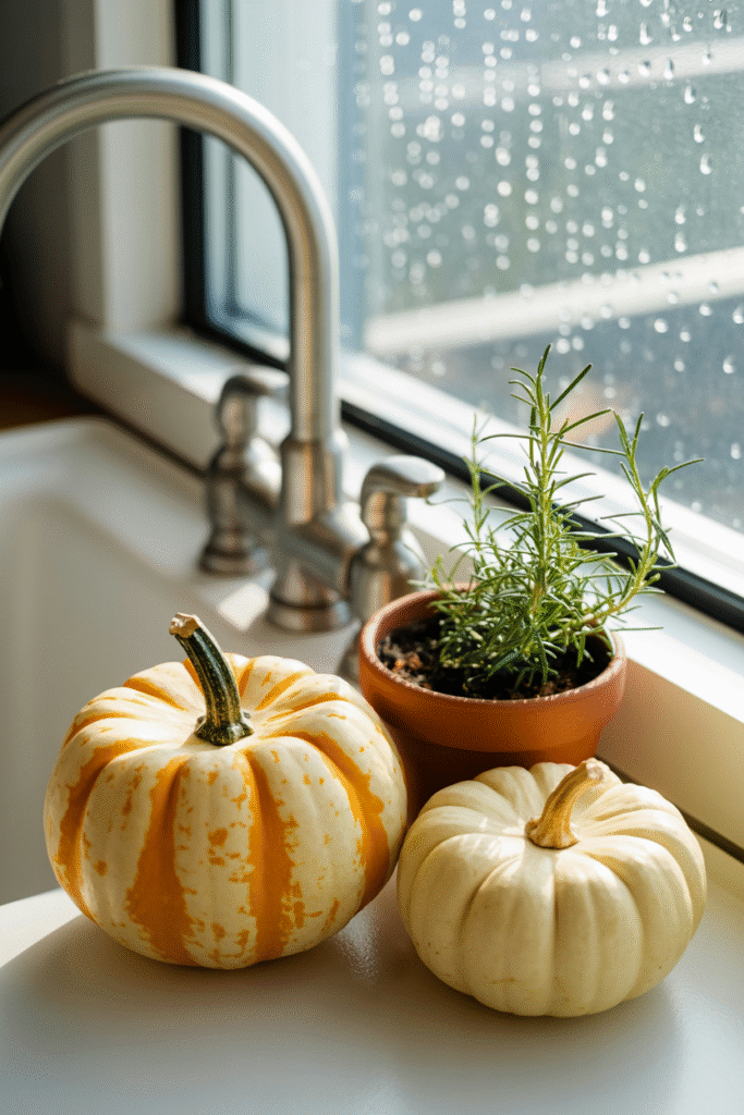 Scatter two or three mini pumpkins on your windowsill, by the sink, or even tied with raffia to your cupboard knobs. They cost almost nothing and bring instant warmth.