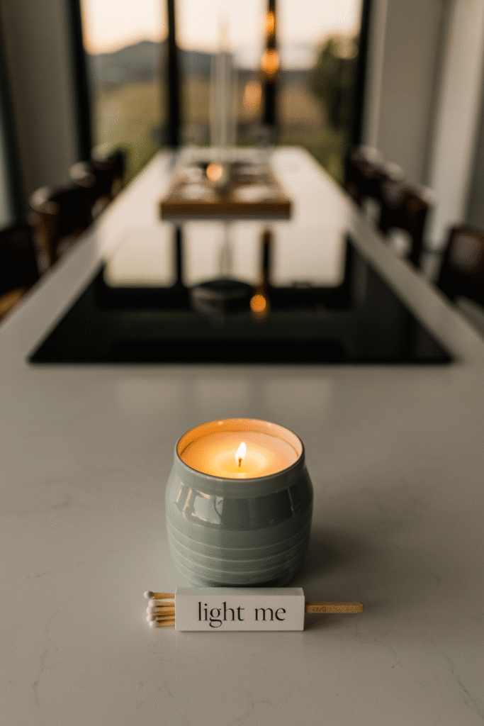 Candles give lovely light and scent, but be mindful of open flames in kitchens. I typically place one on the far end of the counter or on the dining table. Scents like pumpkin spice can feel heavy; I recommend lighter woodsy blends like cedar or sandalwood for cooking areas.