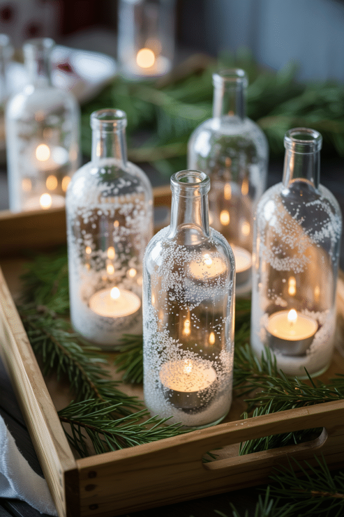 - Materials: mason jars, fake snow, mini figurines (reindeers or trees), glue gun.