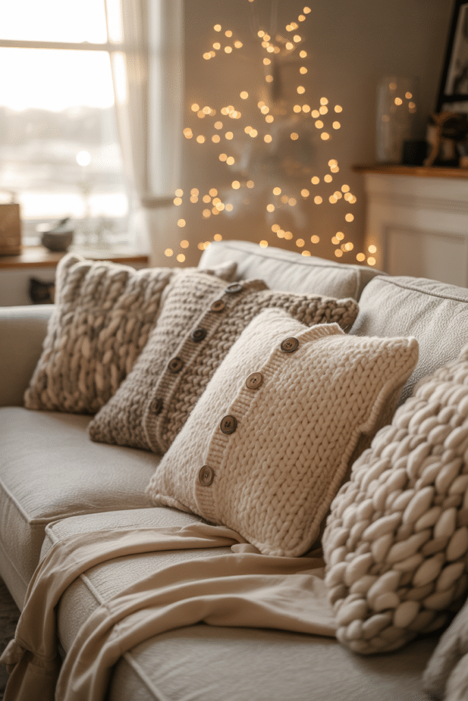Instead of tossing old sweaters, turn them into cozy holiday pillows.