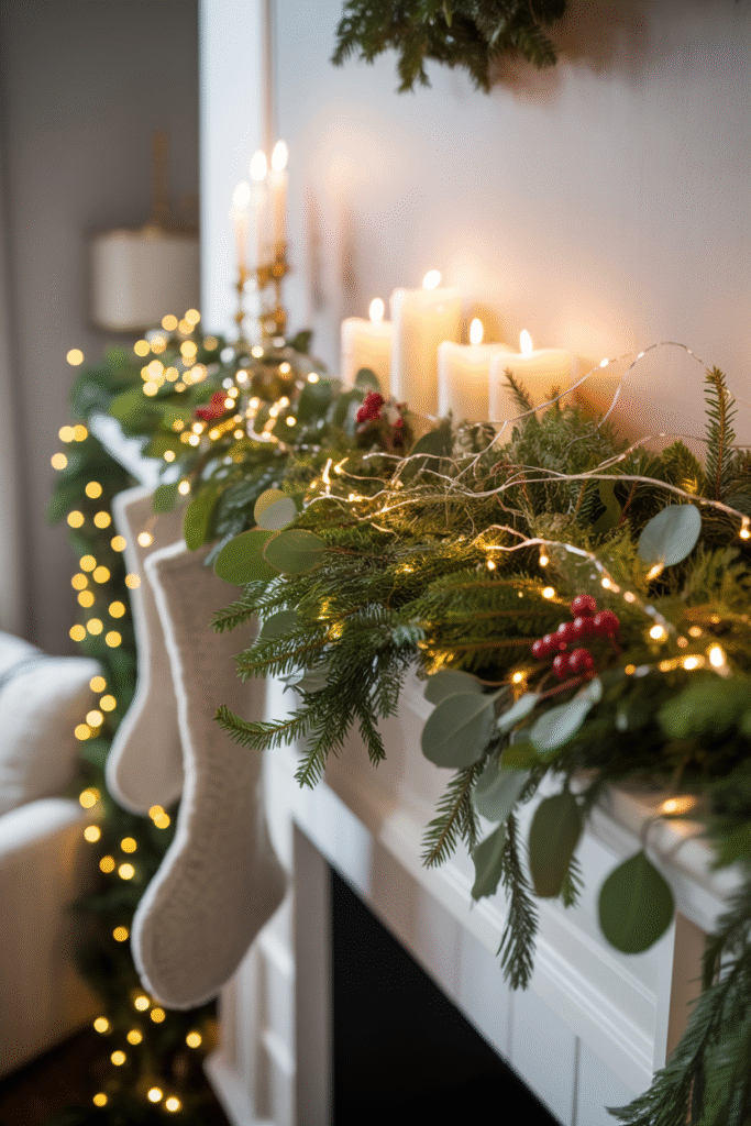 What works best is layering: one soft light source, one natural element, and one personal touch in every room. A wreath plus candles plus a hand-painted bauble. A ladder with lights plus a cozy sweater pillow. Suddenly the whole space feels intentional and festive, without spending a fortune.
