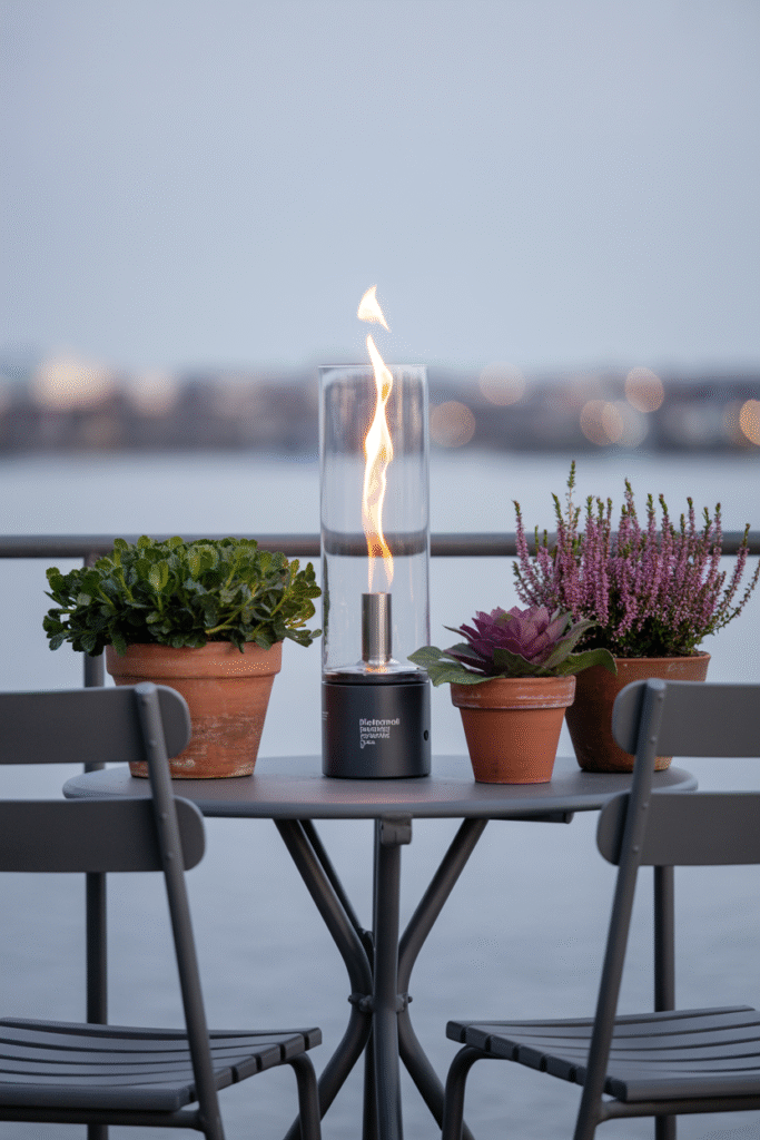 Not every outdoor space can handle a built-in firepit, but portable heat sources change everything. I use a tabletop bioethanol burner on my balcony—no smoke, no ashes, and perfectly safe if supervised.