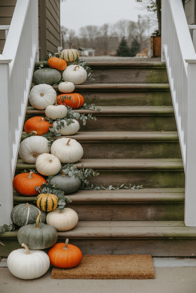 Avoid this: don’t buy only orange pumpkins. Green, white, and striped varieties make your display look curated instead of store-bought.
