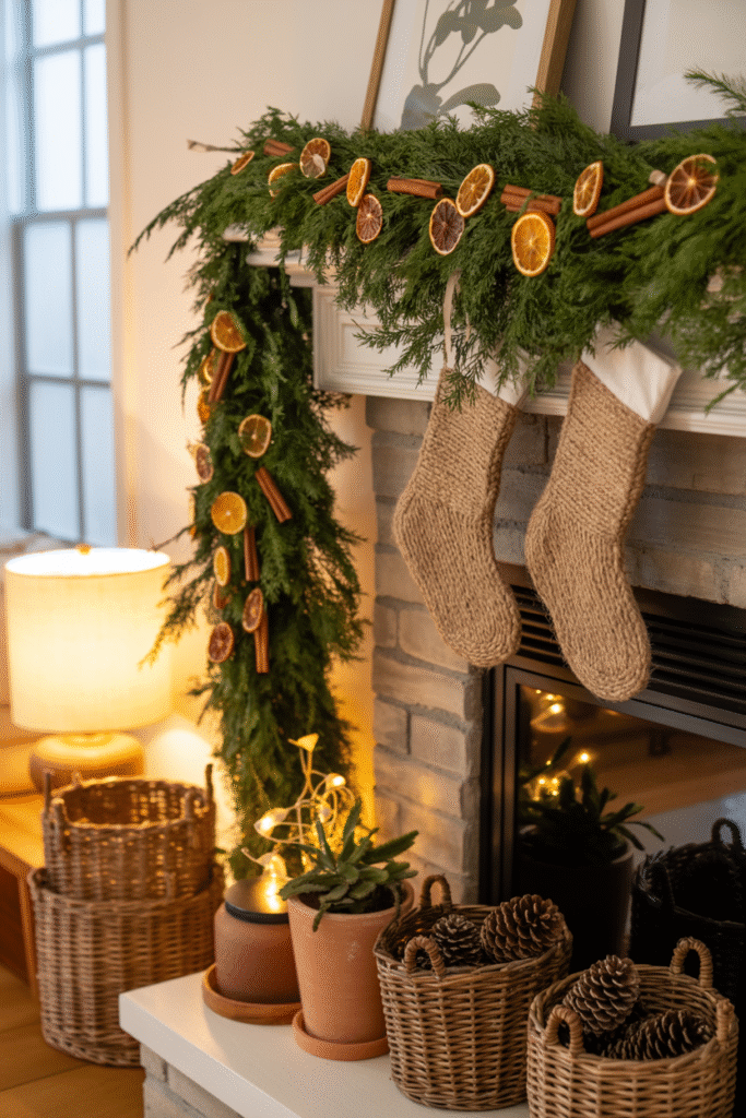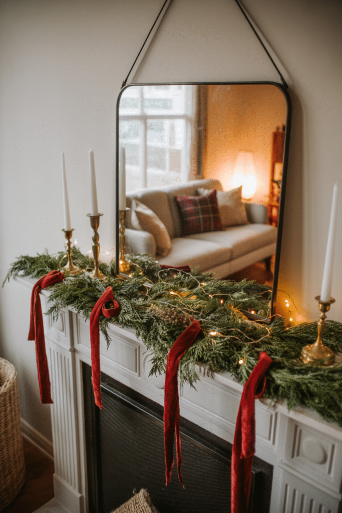 Personal touch: On my own mantel, I use a mix of eucalyptus garland, fairy lights, and mismatched brass candlesticks. It’s simple, smells amazing, and costs less than a pre-made set.