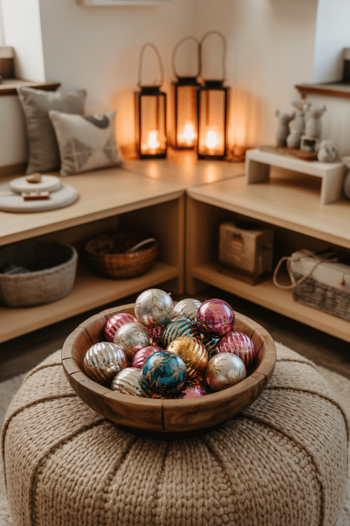 Too much glitter can feel chaotic, while all-matte decor might fall flat. Mix shiny baubles with woven baskets, linen pillow covers, and wooden ornaments for a balanced look. I always keep a few matte-finish ornaments in my collection to tone things down.