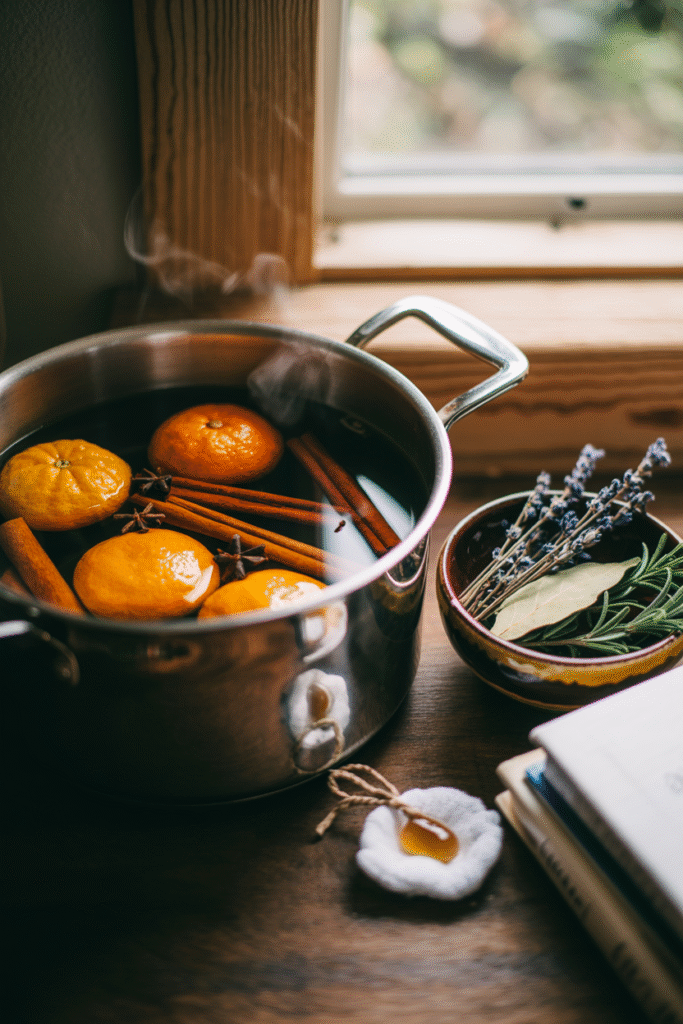 Scented candles are popular, but not everyone likes synthetic fragrances. Simmer a pot of water with cinnamon sticks, orange peels, and a few cloves on the stove. Or make a sachet with dried lavender, rosemary, and bay leaves tucked into your sofa cushions.
