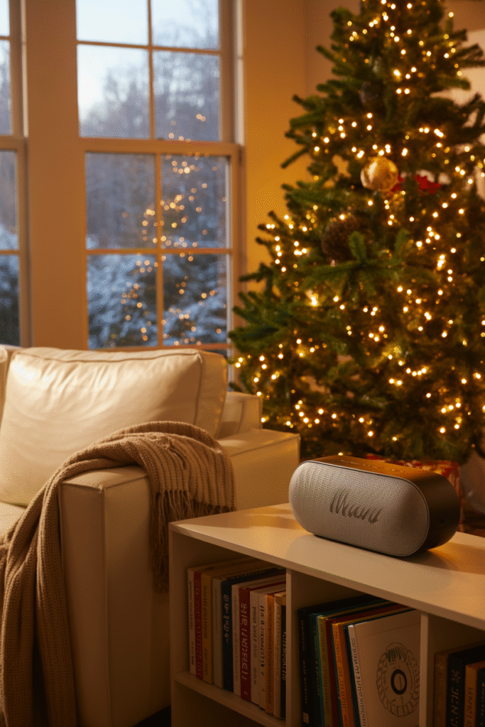 Ambient holiday music (even at low volume) can transform the feel of your living room. Skip the constant carols and try instrumental versions or jazz covers for a more mellow vibe.