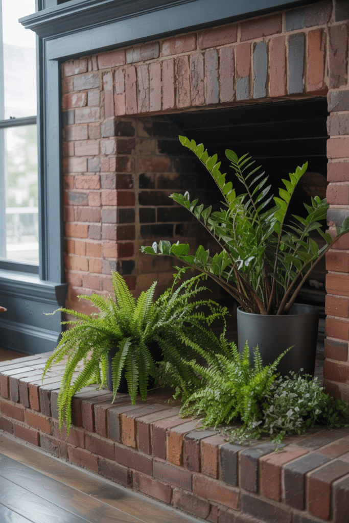 If you have a non-working fireplace, fill the hearth with potted ferns or a large ZZ plant. It’s a classic look that never goes out of style.