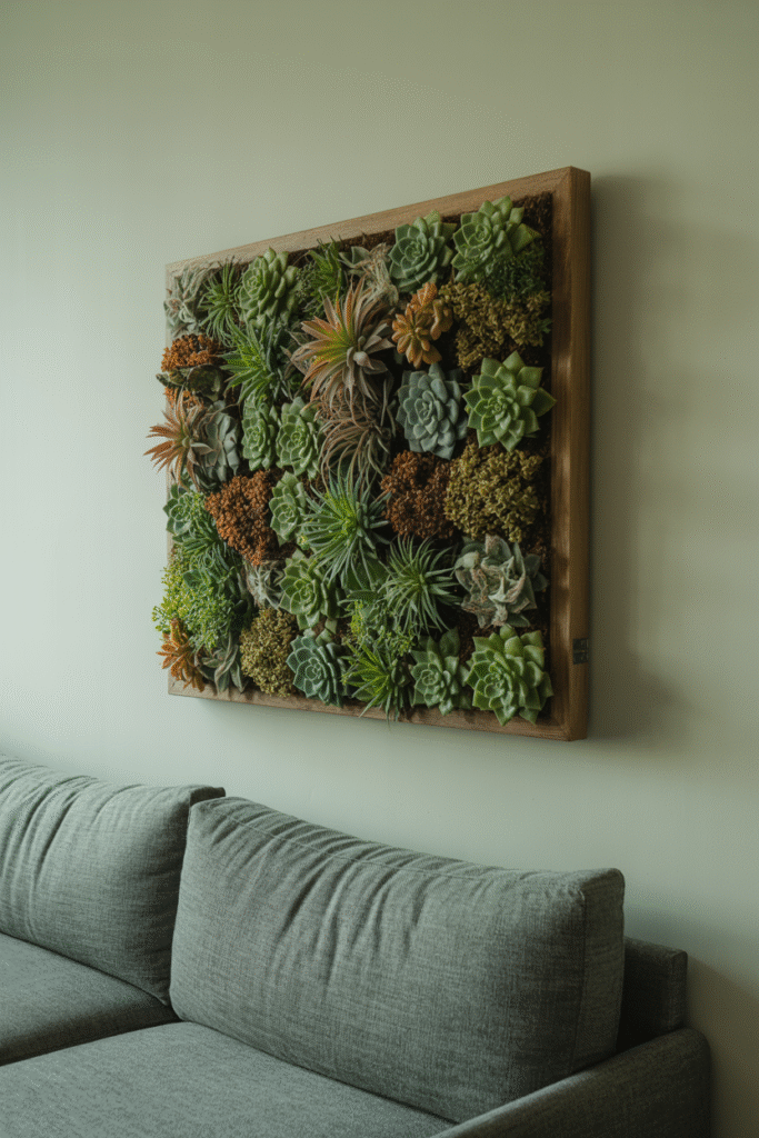 If you’re up for a project, try building a living wall panel. I made mine with a 60 x 90 cm (2 x 3 foot) wooden frame, a wire grid, and about 12 small succulent or air plants. It takes a weekend to assemble, and the materials cost around ₹3,000 ($36). Mount it like a piece of art, mist it every few days, and enjoy the compliments.