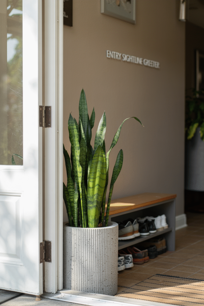 Place a sturdy, glossy-leaved plant (like a snake plant or a cast-iron plant) near your living room entry. This greets guests with calm energy and hides the inevitable pile of shoes behind it. I’ve used this trick in homes with awkward entryways, and it always softens the transition.