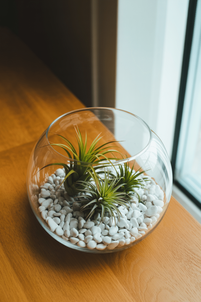 A small, sculptural plant on your coffee table instantly elevates the look. I’ve had great luck with air plants in geometric glass terrariums ($6–$15), or a single small succulent in a handmade pot. These need very little care spritz the air plant every week or soak it for 20 minutes once a month. Succulents want bright light and only occasional watering.