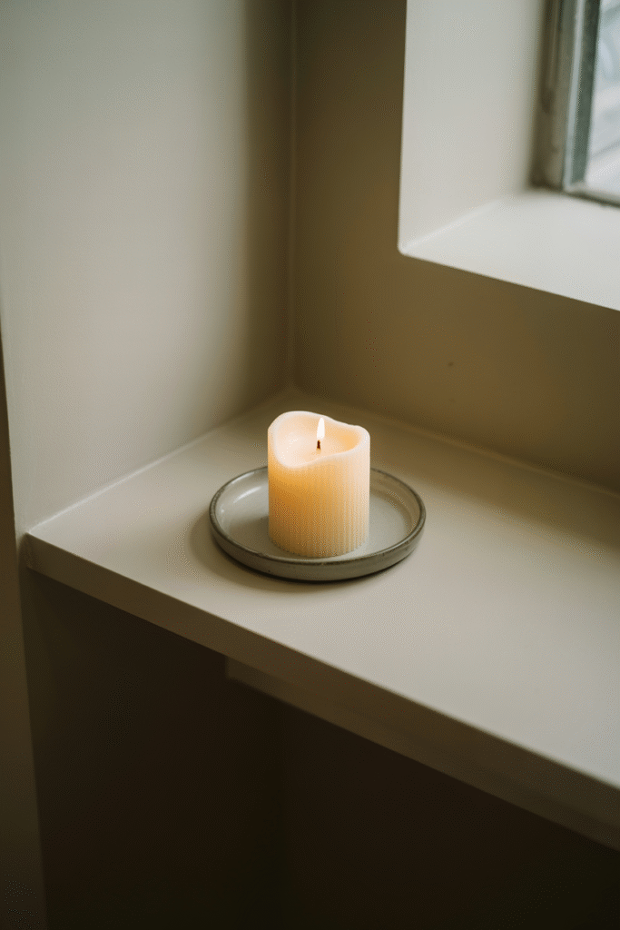 If you want your home to feel festive without visual chaos, use scent strategically. Simmer a pot of water with cinnamon sticks, orange peels, and a few cloves. Or light a single scented candle in a neutral scent like balsam or cedar. I often set up a small simmer pot on the stove when guests are coming—it fills the house with holiday fragrance without any extra decor.