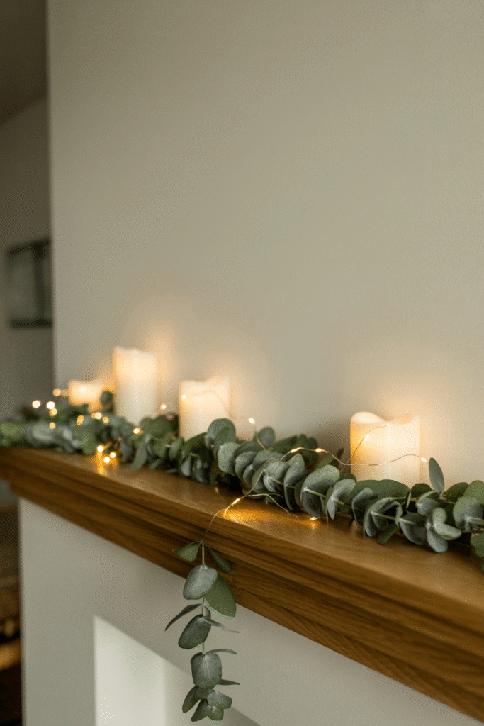 String lights can easily overwhelm a minimalist space if you’re not careful. I’ve found that a single, well-placed strand along a mantel or around a window frame adds just enough sparkle. Go for warm white LEDs rather than multicolored lights. In my own living room, I use a 3 m (10 ft) strand along the mantel, woven through a few sprigs of greenery—simple, but magical after dark.